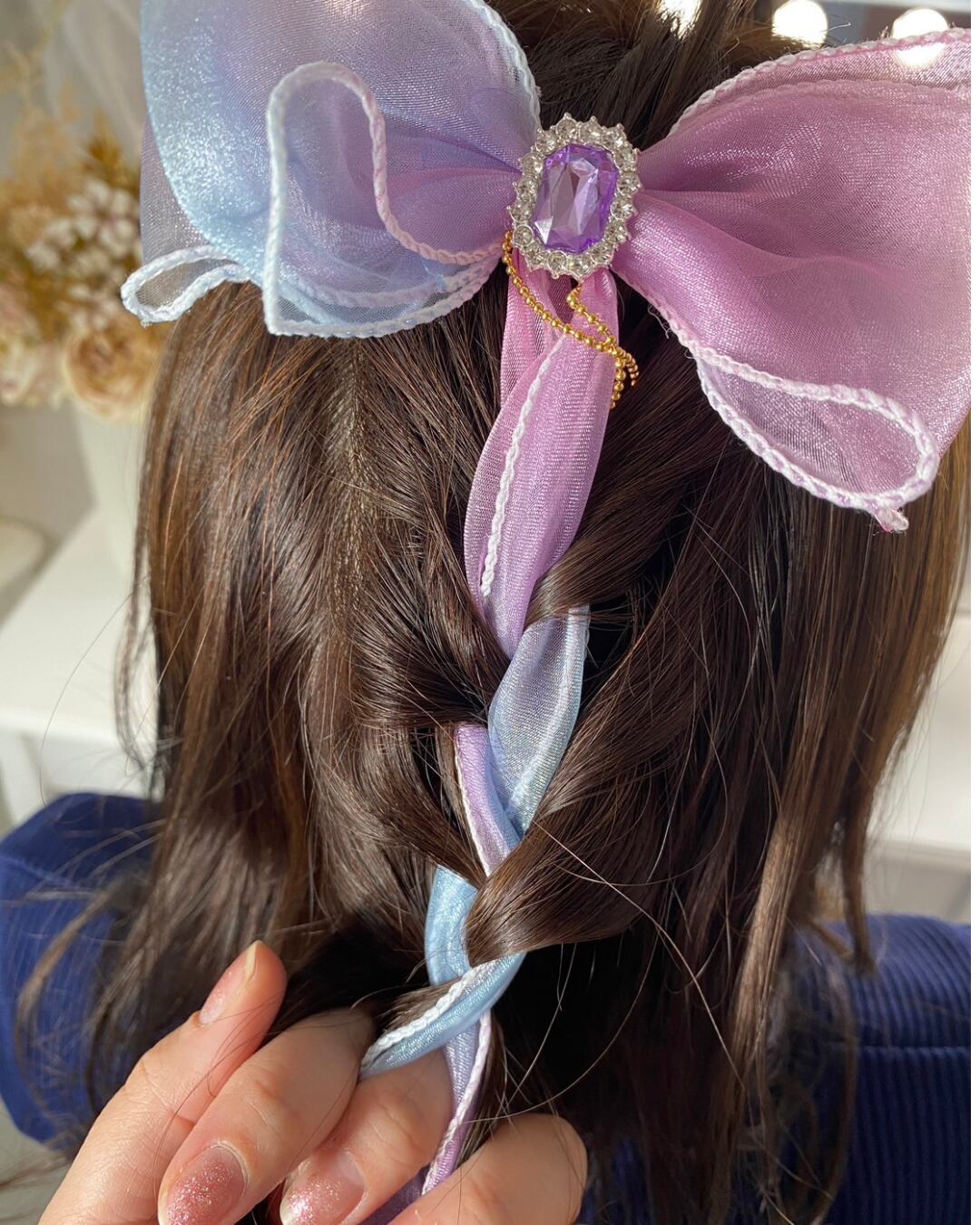 大きめの長めのリボンなのでロングヘアーなら一緒に編み込みしても可愛い!