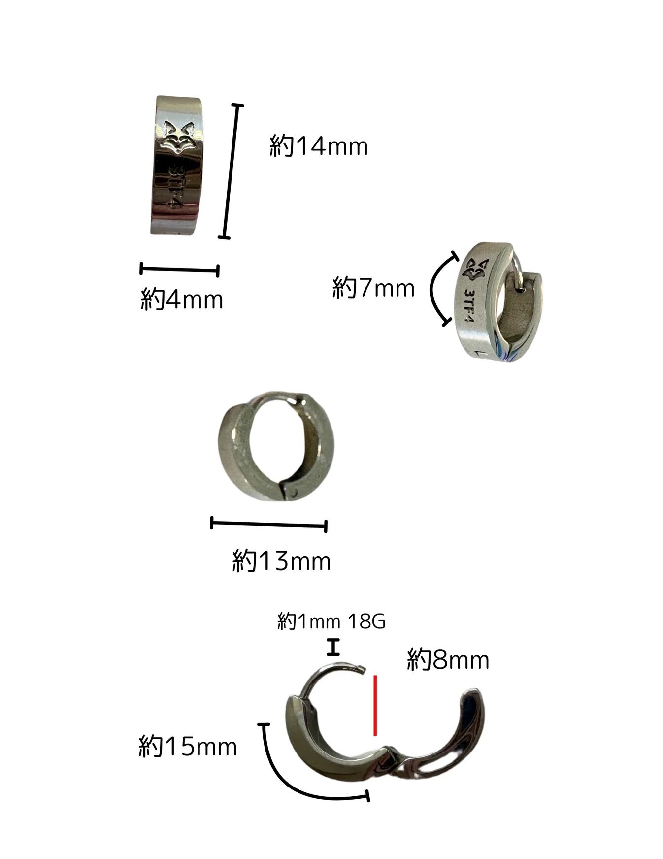 縦約:14mm 横幅:約4mm ポスト18G(1.0mm) ワンタッチキャッチ