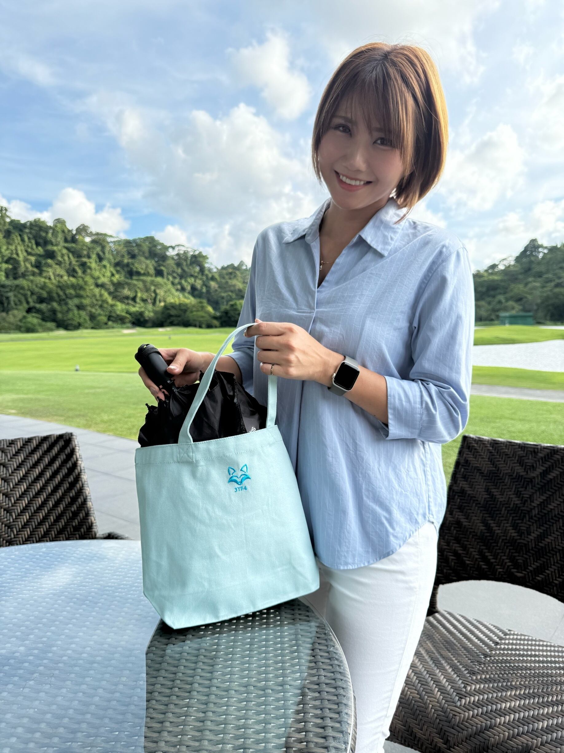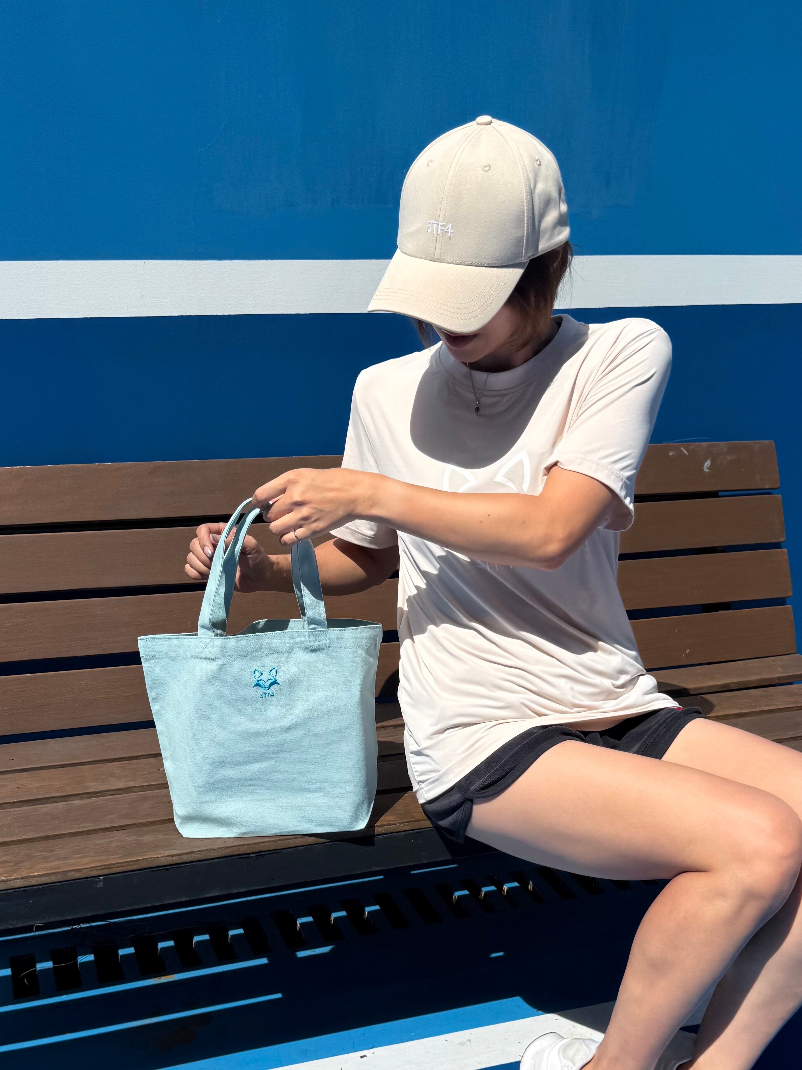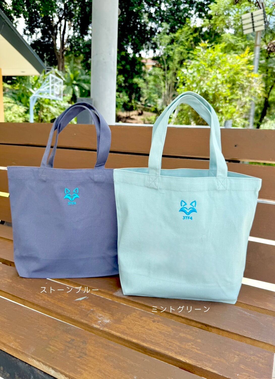 バッグのフロントには、3TF4のスピリットを象徴する“青いキツネ”の刺繍入り。