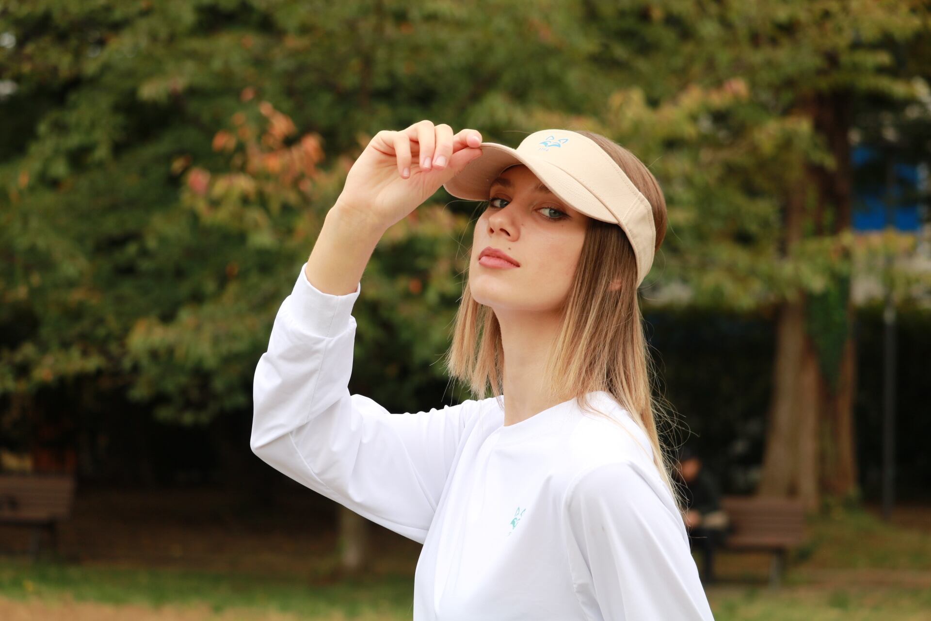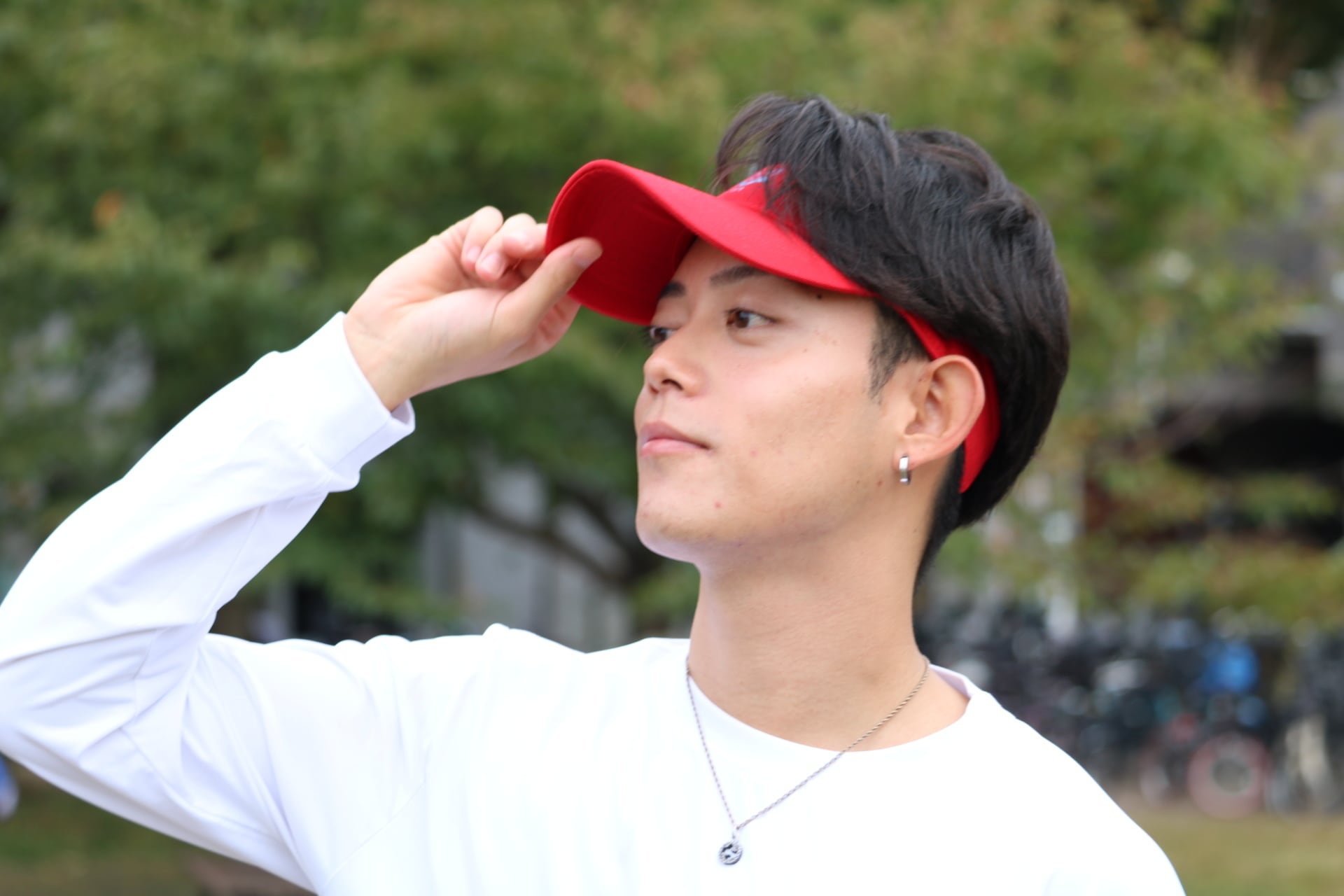顔まわりをパッと明るく見せ、スポーティな印象に仕上げます。